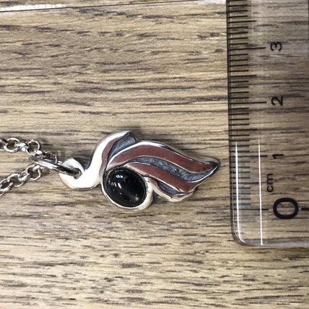 ストレリチア(極楽鳥花)をモチーフに作ったペンダントトップです。使用した天然石はブラックスターダイオプサイト。黒い石なのですが、光が当たると十字架のような光の筋が浮かび上がる石です。