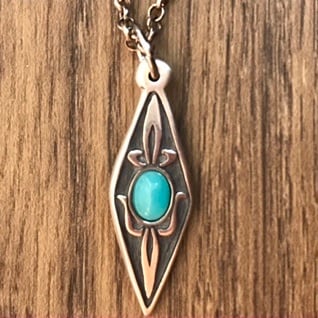 菱形シールド型デザインのペンダントトップです。使用した天然石はアマゾナイトになります。